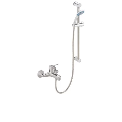 Das Bad-Set besteht aus einer Waschtisch- und einer Wannenfüllarmatur der Serie Vitalis und wird zusätzlich mit einer 60 cm Wandstange, einem 1,5 m Brauseschlauch und einer Handbrause mit 3 Funktionen geliefert. Die Armaturen verfügen über geprüfte Markenkartuschen und Neoperl Mischdüsen. Durch die Bedienbarkeit mit einer Hand kann bequem die Durchflussmenge und die Temperatur geregelt werden. Die Waschtischarmatur wird mit einer Excenterablaufgarnitur geliefert und ist mit flexiblen Anschlussschläuchen ausgestattet, die der aktuellen Trinkwasserverordnung entsprechen. Die Wannenfüllarmatur verfügt über einen Umsteller für die Wannen- oder Brausefunktion.