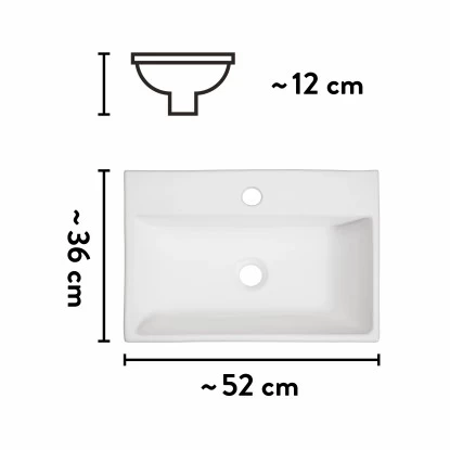 Durch die kompakten Maße von ca. 52 cm x 36 und einer Höhe von ca. 12 cm kannst du das Aufsatzwaschbecken gut auch in kleinen Bädern und Gäste-WCs anbringen. Montieren kannst du dein Waschbecken auf stabilen Platten, Waschtischen oder Unterschränken in passender Größe. Durch das integrierte Hahnloch kannst du das Waschbecken mit einer Waschtischarmatur ganz nach deinem Geschmack ausstatten. Besonders wichtig: Waschbecken ohne Überlauf solltest du nur mit nicht verschließbaren Ventilen verwenden. So kann das Wasser nicht versehentlich übertreten.