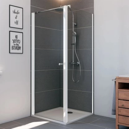 Die Seitenwand Elana für Pendeltüren und Drehtüren steht für Schwung und Transparenz in Ihrem Bad. 6 mm Einscheibensicherheitsglas in einer Teilrahmung verkörpern Leichtigkeit, die sich in jedem Detail wieder findet. Exklusives Design durch elegante Wandanschlussprofile mit Verstellbereich von 20 mm.