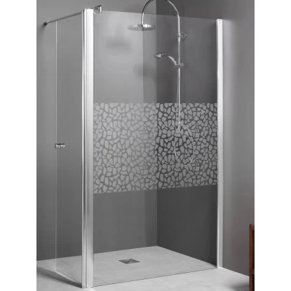 Breuer Entra alleinstehende Seitenwand mit einem beweglichen Element über Eck in 6 mm ESG Klarglas, und einer Breite von 120 cm.