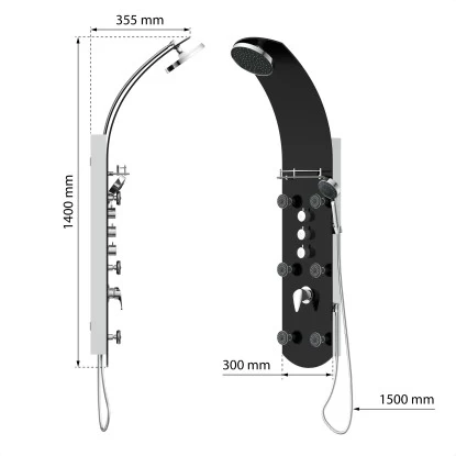 Eisl Duschpaneel Karibik 3 In 1 Mit Regendusche Sechs Massagedüsen Schwarz