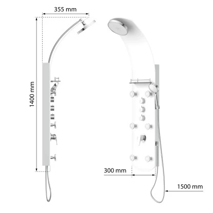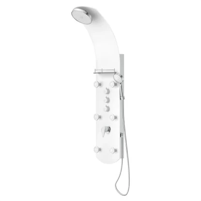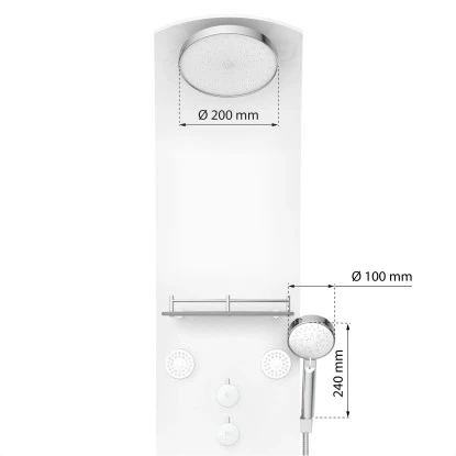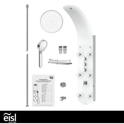 Eisl Duschpaneel Karibik 3 In 1 mit Regendusche Sechs Massagedüsen Weiß. Exklusives Duschsystem aus weißem Sicherheitsglas – Eyecatcher in jedem Bad