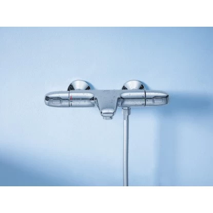 Mit dem Grohe Wannen-Thermostat Grohtherm 1000 bestimmen Sie ganz bequem Wassertemperatur und -verbrauch. Müssen Sie für ein entspannendes Vollbad immer noch einmal heiß oder kalt nachlaufen lassen? Dann werden Sie diesen Thermostat lieben. Dank Grohe TurboStat® füllt diese moderne WannenArmatur mit Brauseabgang Ihre Wanne zuverlässig mit Wasser der gewünschten Temperatur. Die leichte Umstellung von Wanne auf Brause garantiert der AquaDimmer Eco, mit dem Sie in einer Bewegung auch das Wasservolumen anpassen. Diese Armatur ist ebenfalls optimal für Familien geeignet. Grohe CoolTouch® verhindert das Aufheizen der Armatur und SafeStop schützt Sie davor, versehentlich eine zu heiße Temperatur einzustellen. Der EcoButton zum Wasser sparen ist besonders gut für die Umwelt. Die ergonomischen Metallgriffe und Grohe StarLight® Chromoberfläche sorgen für einen langlebigen Glanz.