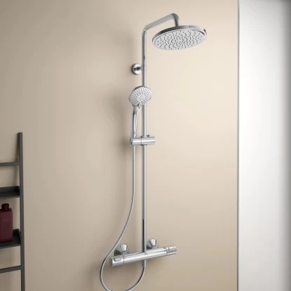 Das Ideal Standard Duschsystem mit Brausethermostat Ceratherm T25 bewährt sich mit ergonomischen Design und einem unvergleichlichen Maß an Haltbarkeit, Sicherheit und Leistung. Hier fehlt Ihnen nichts mehr zu einem perfekten Duschvergnügen.
