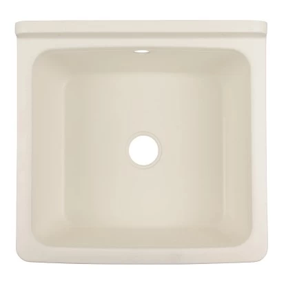 Das Ausgussbecken findet seinen Einsatz vorrangig in Neben-, Kellerräumen oder Garagen. Der Ausguss befindet sich mittig, wandseitig ist der Rand erhöht. Dadurch gelingt die Wandontage besonders leicht.