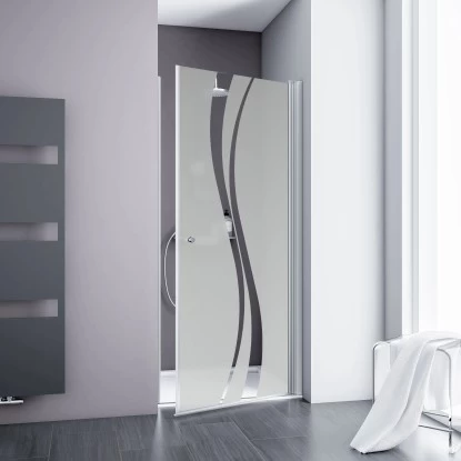 Die Drehtür für Nische besteht aus 5 mm Sicherheitsglas. Durch die werkseitig aufgetragene Fixil-Beschichtung wird die Reinigung der Dusche vereinfacht: Das Wasser zieht sich in dicken Tropfen zusammen und fließt mit Kalk- und Schmutzrückständen einfach ab. Fail-Glassiegel wird in einem aufwendigen Verfahren werkseitig auf der dem Wasser ausgesetzten Seite Ihrer Dusche aufgetragen.