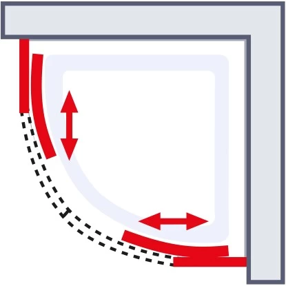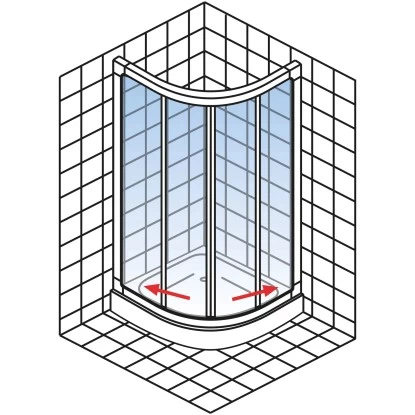 Der Einstieg in die Runddusche fällt dank der beiden verbauten Schiebetüren zum einen großzügig und zum anderen äußerst platzsparend aus. Die praktischen Schiebetüren stehen zu keinem Zeitpunkt in den Raum hinein.