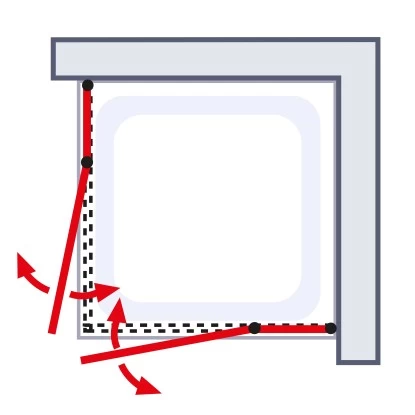 Der vierteilige Eckeinstieg der Serie Sunny von Schulte überzeugt mit vier großzügig geschnittenen Echtglasscheiben (ESG). Das nach DIN-Norm hergestellte Sicherheitsglas ist äußerst widerstandsstark gegenüber Belastungen durch Schläge, Stöße, Biegungen und Temperaturschwankungen, wodurch die Langlebigkeit der Duschkabine gewährleistet wird. Des Weiteren begeistern die beiden großflächigen Drehtüren auch optisch: Sie sind mit dominanten Aluminiumprofilen an den feststehenden Seitenteilen befestigt, sodass die Duschabtrennung im geöffneten Zustand einen komfortablen Einstieg gewährt.