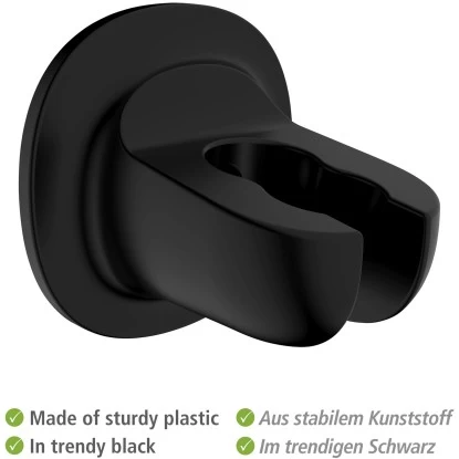 Eine praktische Möglichkeit zum Einhängen der Handbrause bietet der Wenko Duschkopfhalter Libertà Schwarz. Dabei wird der hochwertige Halter selbst ganz einfach ohne Bohren an der Wand befestigt. Der Duschkopfhalter Libertà ist aus stabilem Kunststoff (ABS) hergestellt und ist passend für alle Duschköpfe. Das Design in der Trendfarbe Schwarz fügt sich hervorragend in moderne Bad-Einrichtungen ein und wird zum stylischen wie nützlichen Hingucker im Badezimmer. Der Halter eignet sich ideal zum einfachen Einhängen von Handbrausen in 2 Positionen – zusätzlich oder als Alternative zu Duschstangen. Der Durchmesser der Wandhalterung beträgt Ø 7 cm. Die Anbringung des Duschkopfhalters Libertà gelingt innerhalb von Minuten mithilfe eines Spezial-Klebepads, das Sie ganz leicht an der gewünschten Stelle anbringen können. Geeignet ist das Klebepad für alle glatten, luftundurchlässigen Oberflächen wie zum Beispiel Fliesen oder Glas. Auch nach vielen Jahren der Nutzung lässt sich der Duschkopfhalter samt Kleber rückstandslos wieder entfernen.